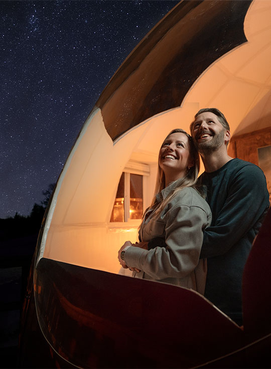 Our luxury Sky Watching Domes offer a truly immersive experience where guests can sleep under the stars and connect with nature. The Sky Watching Domes provide a window into the night sky, allowing guests to explore how the Métis people used the stars and sky to navigate, keep time, and plan their work on the land.