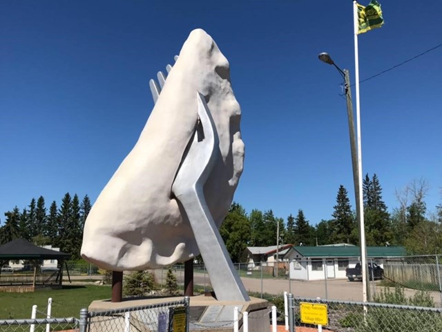 Glendon, nestled in northern Alberta just north of St. Paul, holds a special place in the hearts of its residents and visitors alike. The village takes its name from the maiden name of an early postmaster's mother, a testament to its close-knit community and rich history. In 1993, Glendon proudly unveiled its roadside tribute to the beloved perogy. Standing tall at 7.6 meters, the 'Giant Perogy' with its accompanying fork has become a cherished symbol of the town's spirit and pride. It's no wonder it's counted among the Giants of the Prairies, capturing the imagination of all who pass through.